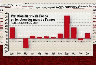 Avec l'arrivée du printemps, Léonard Sartoni met à jour son suivi du marché de l'or : le travail toujours très fouillé d'un bullish convaincu ! le lien vers le fichier pdf et puis un petit graphique assez parlant sur les variations saisonnières du cours de l'once d'or, depuis 30 ans :