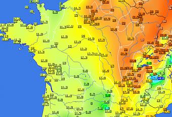 En milieu d'après-midi, il faisait 23 degrés à Strasbourg et à ma station de Mulhouse avec un soleil simplement voilé, alors qu'il n'y avait que 9 degrés à Toulouse et 11 degrés à Perpignan et Biarritz...sous la pluie !