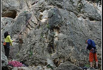 Marie dans "Goulotte" - 5b et JeanFi dans "Génération Grigri" - 5c+.