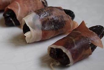 Ca va être l'une des recettes les plus courtes du blog. Il suffit de dénoyauter les pruneaux, les farcir avec une amande grillée et les enrouler avec le jambon (compter 1 tranche pour 4 pruneaux). Fini!