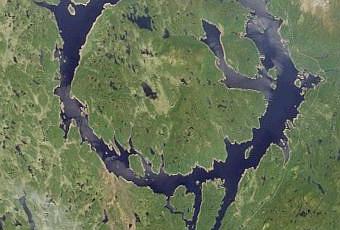 Mais le vrai responsable de la superbe géométrie de ce lac est un astéroïde d’environ 5km de diamètre qui percuta ce point il y a 214 millions d’années, formant un cratère de 100 km de diamètre, le 5ème par la taille repéré sur notre planète.