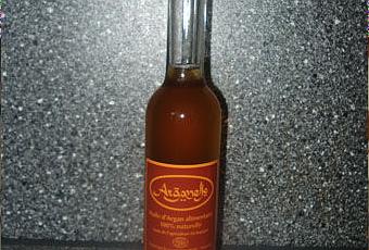 Tout d'abord l'huile d'argan, pour ceux qui ne la connaissent pas c'est une huile qui vient de l'arganier, un arbre millénaire du sud-ouest marocain, elle est très riche en vitamine E et c'est la seule huile qui ne contient pas de cholestérol, elle possède aussi beaucoup de vertues cosmétiques. Elle est également très répandue en ce moment dans la cuisine des grands chefs français. Elle a un goût de noisette et de sésame grillées.
