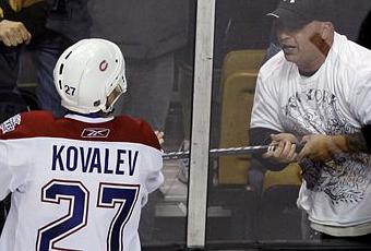 Voyez sur la vidéo, un fan de Boston qui essaie de voler le bâton de Kovalev.