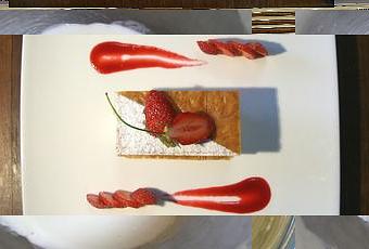- Dresser les fraises taillées en deux sur les feuilletés