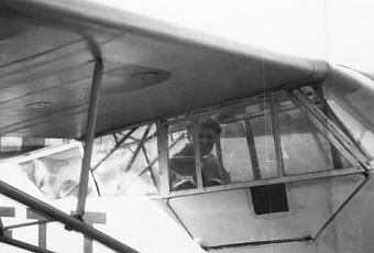 (photo collection privée Michel Léveillard)Marcel Raymondet assis en place arrière du piper L4 F-BETT attend son élève, Michel Léveillard. Marcel Raymondet fut chef pilote de l'aéroclub de Normandie de 1948 à 1951.