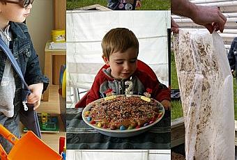 Il a adoré son blouson, son sac et sa casquette (sac et casquette faites par Maman), trop kiffé sur ses lunettes (qu'il n'a plus voulu quitter non plus, il a adoré le cadeau d'Elodie et Marvin (un jeu aimanté Djeco, une marque que je recommande), et quand il a découvert sa pelle et son rateau, qu'on lui a dit d'aller dehors...