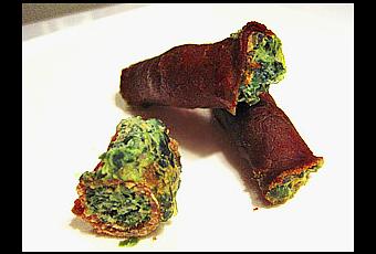 - Pour finaliser vos cannelloni, superposer deux tranches de carpaccio, déposer une cuillère à soupe de préparation et rouler. Renouveler l’opération avec toute la viande.