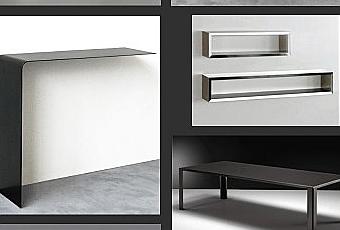 Leur collection est divisée en quatre grande lignes : les tables (hautes et basses), les luminaires, les chaises (tabourets, sofas, chaises...) et les accessoires (mirroirs, meubles TV, lits, étagères..). Mais mon gros coup de coeur va à la table Big Irony et son plateau acier :