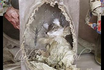 Toujours dans la même série hivernale , une collection de scènes en boites d'où s'échappent deci-delàquelques branches d'arbres printanières.