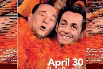 Parmi les 3 posters qui seront affichés sur les abribus de la ville, et disponibles sous la forme de 160 000 cartes postales, on trouve une image de Berlusconi et Sarkozy portant un boa orange.Le journal Het Parool indique que l'ambassade de France a indiqué que l'Elysée ne donnerait pas son accord pour cette utilisation.
