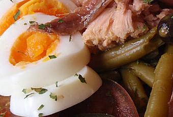 l’assiette avec les haricots. Ajouter le thon, les olives et les anchois.