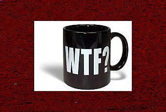 On commence par l’indispensable mug “WTF?” (abréviations de “what the fuck?” qu’on pourrait traduire à peu de chose près par “zut, qu’est-ce qu’il y a ?” ) pour ceux à qui il ne faut pas trop parler le matin…