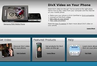 La société DivX et son fameux format vidéo s'attaque enfin aux mobiles publiquement. Si un lecteur était déjà disponible en téléchargement depuis quelques temps, il était bien caché sur le site de DivX. Cette époque est révolue. La version mobile de DivX est maintenant bien mise en avant sur le site(src : 2803). Le lecteur est disponible pour Windows Mobile et Symbian. Des mobiles certifiés DivX font également leur apparition. Les deux premiers modèles étant les Samsung F300 et F500. Pour ces modèles, le lecteur est intégré d'origine.