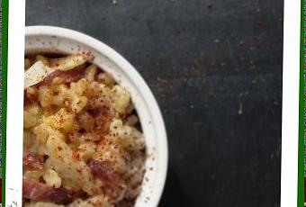 8 - Lorsque le blé est cuit, ajoutez la crème, le reste de chorizo et de piment d’Espelette, le parmesan et laissez finir la cuisson pendant 5 minutes à feu doux.