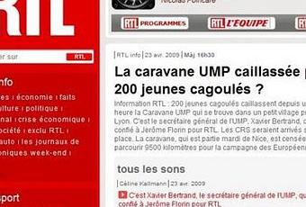 « 200 jeunes cagoulés caillassent depuis une heure la caravane UMP qui se trouve dans un petit village près de Lyon. » L'information est donnée ce jeudi en milieu d'après-midi par RTL, qui dit la tenir du secrétaire général de l'UMP, Xavier Bertrand. Une heure plus tard, l'article est retiré du site Internet de la radio.