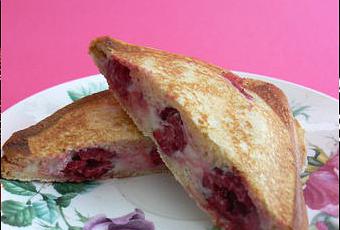2. Tartiner les tranches de brioche de la sauce au chocolat blanc. Disposer sur une tranche les framboises, refermer le croque-girly.