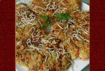 Cuire le Quinoa selon la recette de base. Mélanger au quinoa cuit, le lait, la farine et l’œuf. Puis ajouter les carottes râpées, l’ail, l’oignon et le corinadre hachés. Saler.