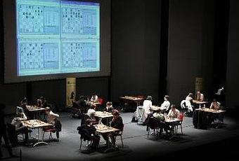 Les premiers échiquiers sur la scène © Fédération Française des Echecs