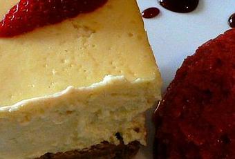 S'il y a un gâteau pour lequel tous les membres de la famille craquent, c'est bien le "cheese cake" ! -On le voit sur la photo accompagné d'une quenelle de granité de fraises. Miam !-