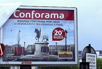 Vu ce w-e dans Paris, j'ai été assez étonné de voir que Conforama reprenait le thème du parachutage de meubles en plein Paris pour la réouverture de son magasin au Pont Neuf, cette fois en affichage. Après des vidéos virales ayant mollement pris (à peine 16 000 vues de ce que je viens de voir sur Youtube), la marque accompagne donc ses affiches de cet accrochage de chaise plutôt convainquant pour le coup. Alors je ne pense pas que la plupart des cibles feront le lien avec la campagne virale mais ça peut quand même interpellé le passant... comme quoi, le 360° n'est pas (encore) mort !