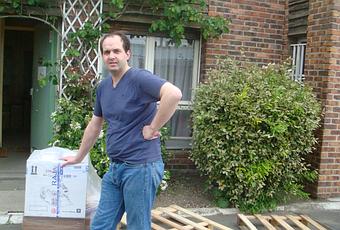 Comme nous sommes une équipe très au point, les rôles ont tout de suite été définis. Alors que Jérôme descendait les plus gros colis au sous-sol et que Sophie les rangeait, j’ai eu pour tâche de vérifier l’état de la marchandise, munie d’un stylo, bon de commande et cutter, autant vous dire que le travail fut loin d’être aisé avec le vent alentour. A un point tel que je me suis retrouvée à courir, perchée sur mes talons hauts, derrière le bon de commande qui s’était envolé…