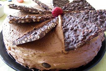 Recouvrez à nouveau de chantilly au chocolat l'intégralité du gâteau puis décorez avec les croquants de riz soufflé.