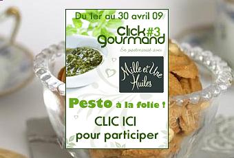 29 avril, il ne vous reste donc que 2 jours pour participer au "Click gourmand" dont le thème ce mois-ci est le pesto.Deux jours, c'est plus qu'il ne vous en faut pour participer... toutes les idées sont les bienvenues...