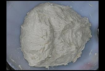 Ajouter ensuite le reste d'eau tiède et de farine. Sel. Malaxer vigoureusement la pâte jusqu'à ce qu'elle ne colle plus. Si nnécessaire, ajouter un peu de farine ou d'eau.