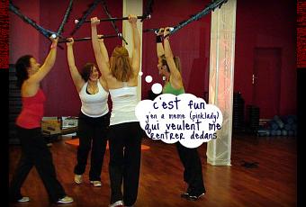 C'est un sport autour du trapèze où on ne voit pas le temps passé, durant tout le cours j'ai eu la banane, surtout avec pink lady qui étant trop petite n'arrivait pas à toucher par terre et qui nous a permis d'avoir une bonne crise de fou rire!