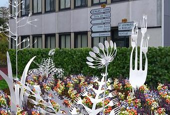Ah!, les sujets choisis par les collectivités ne sont pas souvent les plus faciles à traiter...Voici un avant projet d'éléments pour un massif à proximité de la cantine municipale.