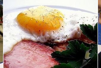 Disposer les steaks de jambon cru dans un plat de service et poser délicatement un oeuf au plat sur chacun. Servir sans attendre, avec du riz, de la salade de tomates et laitue, ainsi que des tranches de pain de seigle.