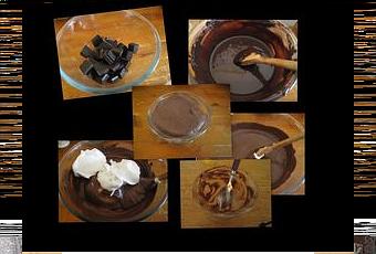 - faire fondre une plaquette de chocolat noir dessert au bain marie ou au micro-ondes