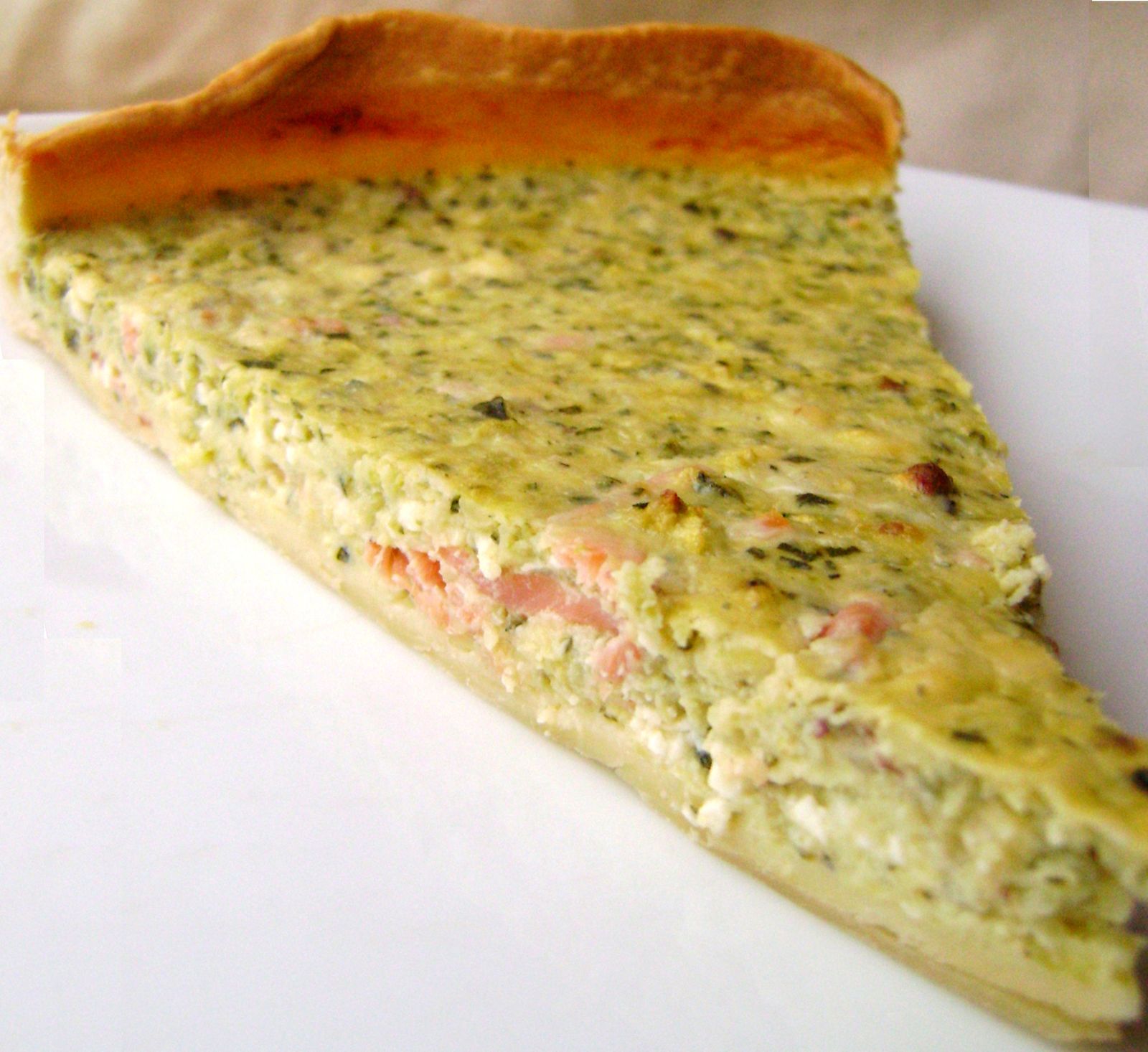 Préparation1. Précuire la pâte brisée. Couper la courgette et la passer au mixeur. Emietter la Feta, ainsi que le fromage frais. Asperger le saumon fumé du jus de citron.