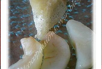 * Faire cuire les poires 5 à 8 mn dans une poële dans laquelle vous aurez préalablement fait fondre du beurre