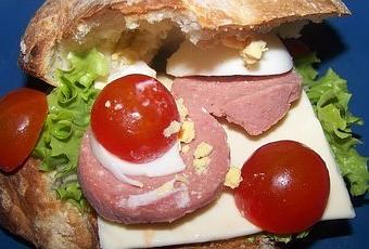 Ici j'ai fait un sandwich, salade, tomate cerises,charcuteries, oeufs durs et fromage de chèvre, sauce mayooo!!