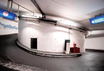 [A new immersion into an underground parking in Paris, but this time to frame curved lines instead of classical linear perspectives of a parking lot.]
