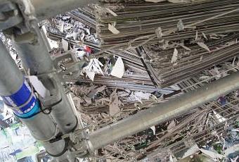 Mais il ne s'agit pas seulement de commenter ou de critiquer. Le public est invité à agir en se saisissant de grands couteaux à pains disposés le long de l'échafaudage de manière à couper les angles, griffer les piles d'images et ainsi les détruire peu à peu.