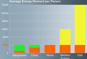 En Europe, la consommation d’énergie correspond à environ 6000W par personne. Il s’agirait donc de réduire notre consomation d’énergie de 2/3, alors que les états-uniens devraient diminuer la leur d’un facteur 6, tout en laissant le reste du monde se développer un peu: