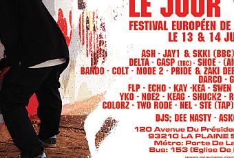 Le jour "J", c'est un plateau qui réunit les légendes de la scene Graffiti européenne, qui a bercé les années 80…et influencé toute la scene Graffiti européenne depuis ces vingt dernières années. Une performance sur deux jours, avec des DJs pour recréer l’ambiance du mythique terrain de Stalingrad (entre autres Mode 2, Bando, Jay, Skki, Colt, Jon 1, Delta, Shoe, Rdf1, Banga, dj Dee Nasty). Honnêtement, on peut difficilement faire mieux. Ca risque d’être anthologique. All Stars Game bébé.