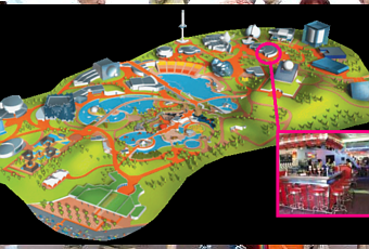 Ce restaurant est une cafétéria / snack / bar. Savourez les spécialités de la rôtisserie et du grill dans un décor évoquant le cinéma américain des années 50 et 60 ou accordez-vous une pause rafraîchissante sur la terrasse pendant votre visite. Ambiance décontractée ! Sur la terrasse ombragée par les oliviers, il est facile de garder un oeil sur vos enfants qui jouent dans le labyrinthe d'eau.