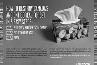 Du coup, à chaque fois que Kleenex lance une belle campagne pour expliquer combien il est cool de s'y moucher, ces gredins de Greenpeace contre-attaquent en mettant en ligne une parodie critique de la campagne.