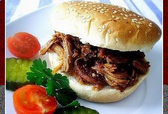 Le "pulled pork" est une spécialité du sud des Etats-Unis constituée de viande de porc effilée - préalablement cuite au barbecue ou mijotée, servie dans des petits pains à hamburgers. La présence de ces derniers pourrait faire penser à de la fast food et pourtant, il vaut mieux avoir un peu de temps devant soi avant de se lancer dans la confection de cette recette qui demande une longue cuisson, même si elle n'a rien de compliqué. Le résultat final en vaut la chandelle: une viande fondante enrobée de sauce caramélisée, à la fois aigre, douce et piquante... Un délice!