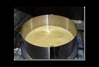 2 – Verser la mousse de mangue dessus, on peut faire prendre 1h ou 2 au frigo.