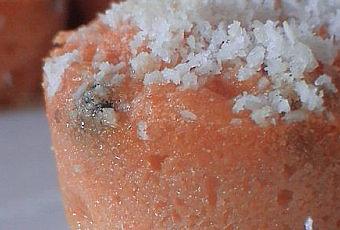 Versez la préparation dans vos moules à muffins, coiffez chacun d'eux d'un nuage de noix de coco rapée et enfournez pour 30 minutes.