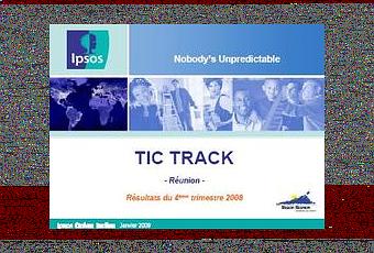 Voici les résultats de l'étude TIC TRACK (IPSOS-REGION REUNION) du dernier trimestre 2008. Elle porte sur 2250 individus ou 9 000 par an qui résident à l'île de la Réunion.