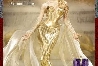 Le soleil et l’or. Recréation d’un temple païen avec des marbres, des fontaines et des statues. Cette femme proche et inaccessible à la fois a été habillée d’une robe-sirène et de voiles d’or. Elle est humaine et a d’étranges pouvoirs.