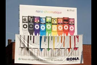 Opération de marketing alternatif plutôt bien vu de la part de Rona qui génère un mash-up avec la Pub Ipod ! (placardée dans toutes les grandes villes, je suppose, donc discours international![[Pub/Marketing] C’est dans les vieux pots que l’on fait les meilleurs…remix d’Ipod ;)](http://media.paperblog.fr/i/191/1915762/pubmarketing-cest-vieux-pots-lon-fait-meilleu-L-2.jpeg)