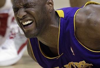 Odom a chuté après un contact avec Shane Battier sur un layup lors du troisième quar-temps jeudi soir et avait quitté ses coéquipiers immédiatement après le choc.