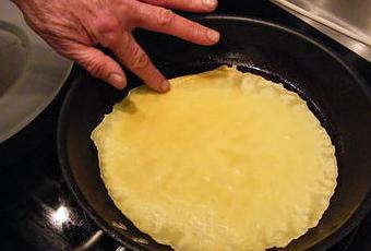 Huilez une petite poêle, chauffer à feu doux, versez une bonne louche de pâte, remuer pour tapissez le fond, faire cuire 2 mn, retournez, dorez à nouveau l'autre face et réservez.