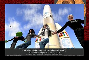 On l’apprend par le site I-marginal. Son équipe Second Life dirigée par Tatiana F. Salomon (aka tatiana Salomon) vient de réaliser pour le Laboratoire APC et le CNRS, La Maison de l’Astroparticule (MAP), dans le cadre d’EuroCampus. Le lancement de cet espace, le jeudi 14 mai, prochain, permettra de suivre en direct live de Kourou, le départ de la fusée Ariane 5, emportant à son bord le satellite Planck, qui va “porter un regard vers l’aube du temps”.